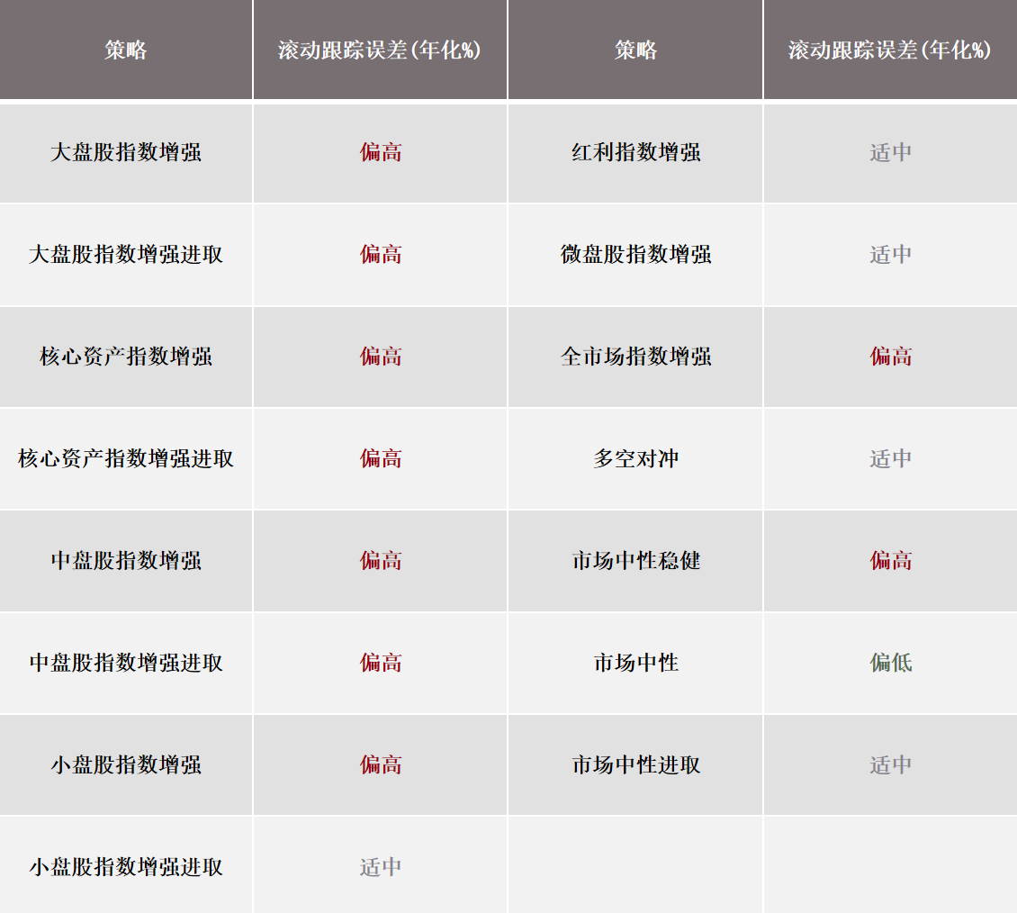 本月所有策略的滚动跟踪误差较上月均有所上升。