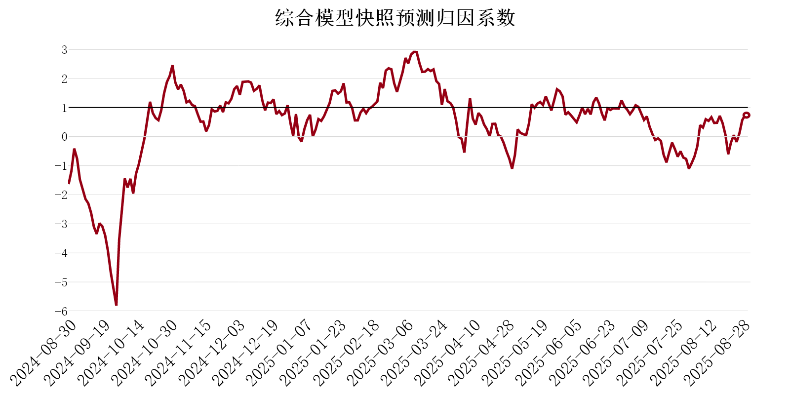 最近一年,股票回报综合模型的快照预测归因系数如下图